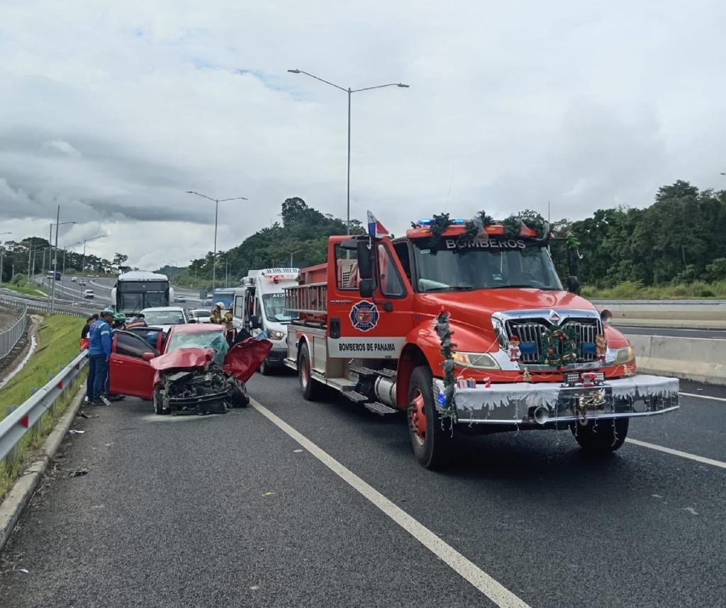 Por otro lado, en la vía Roberto Chiari, más conocida como la carretera de 8 carriles, el conductor de un auto Kia rojo aparentemente perdió el control, invadió el carril contrario y colisionó contra un autobús de la ruta La Chorrera-Panamá.