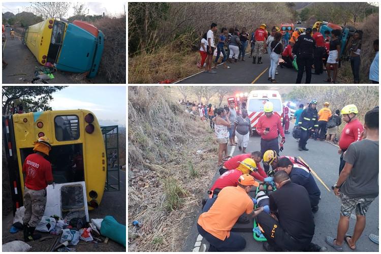 Cuarenta pasajeros de un bus resultaron heridos cuando el transporte se volcó en el sector de San Roquito, ubicado entre Natá y Penonomé, en la provincia de Coclé.
