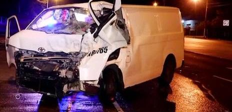 Los primeros informes extraoficiales revelan que el auto, tipo panel, trató de esquivar un auto que se atravesó en la vía, pero colisionó contra un bus de la ruta San Vicente.