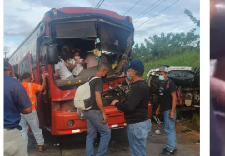 En este accidente se vieron involucrados tres vehículos, un autobús de la ruta Panamá -Darién y dos camiones, los dos últimos terminaron volcados.