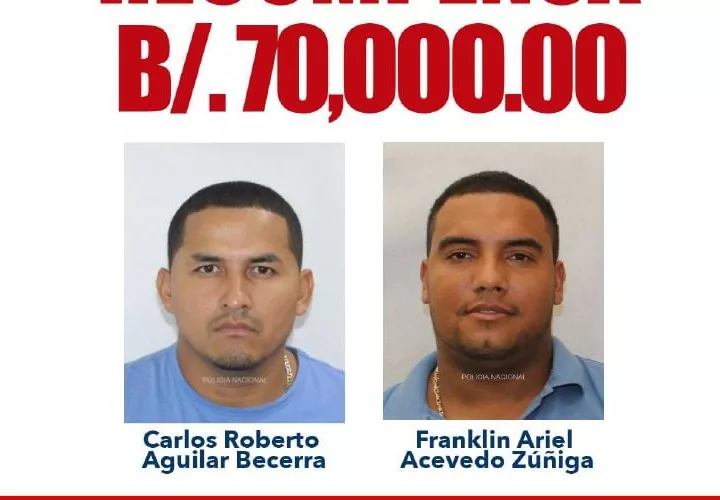 La Policía Nacional (PN) ofreció una recompensa de hasta $70 mil a quien proporcione información que permita dar con la captura de Carlos Roberto Aguilar Becerra y Franklin Ariel Acevedo Zúñiga, presuntos integrantes de la banda los "HP" que opera en Panamá Este.
