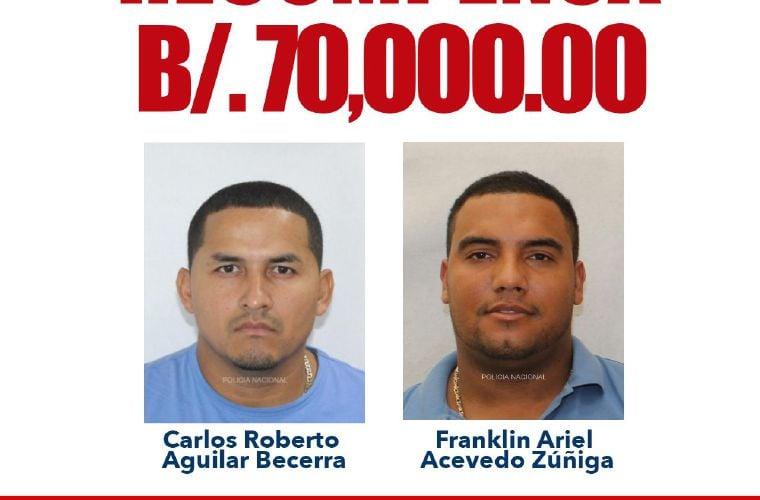 La Policía Nacional (PN) ofreció una recompensa de hasta $70 mil a quien proporcione información que permita dar con la captura de Carlos Roberto Aguilar Becerra y Franklin Ariel Acevedo Zúñiga, presuntos integrantes de la banda los "HP" que opera en Panamá Este.