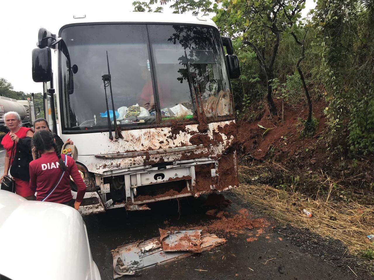 De acuerdo a testigos, el enorme bus de 60 pasajeros se salió de la vía e impactó contra la cuneta provocando que algunos de los pasajeros se golpearan.