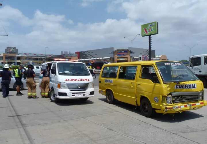 Entre los heridos, la peor parte la llevó el conductor del colegial, quien fue trasladado con golpes de consideración y sangrado a recibir atención médica, al igual que la conductora del auto sedán, al hospital Gustavo Nelson Collado.