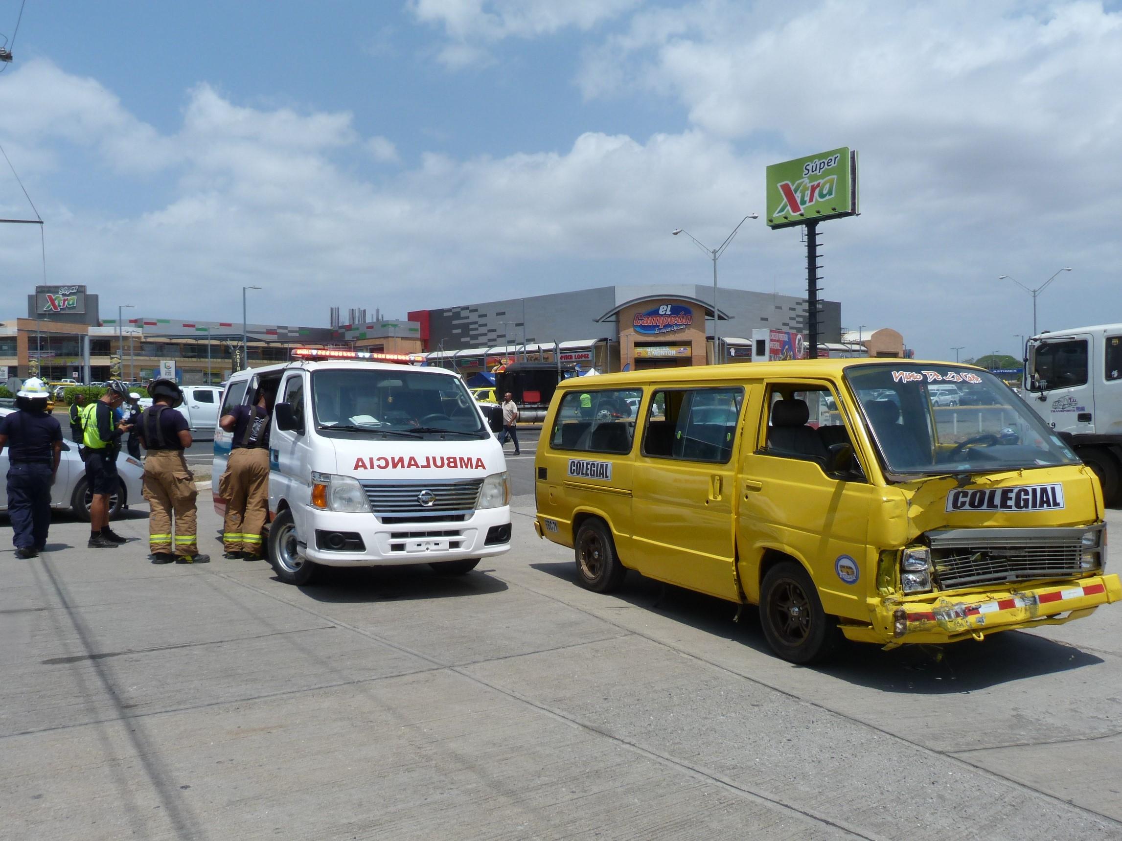 Entre los heridos, la peor parte la llevó el conductor del colegial, quien fue trasladado con golpes de consideración y sangrado a recibir atención médica, al igual que la conductora del auto sedán, al hospital Gustavo Nelson Collado.