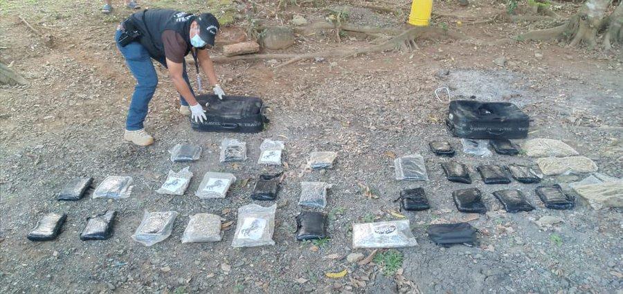 Los estupefacientes estaban dentro de dos maletines cerca de un vehículo abandonado.