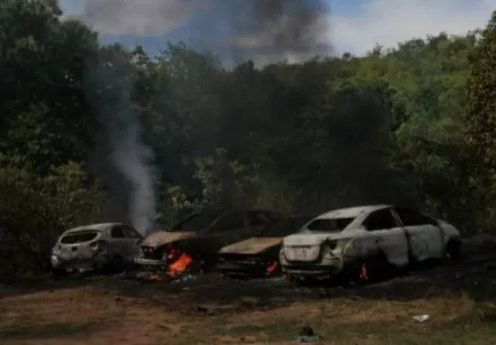 Cuatro vehículo pertenecientes a una misma familia, se incendiaron cuando se encontraban estacionados cerca del río Cañazas, en la provincia de Veraguas.