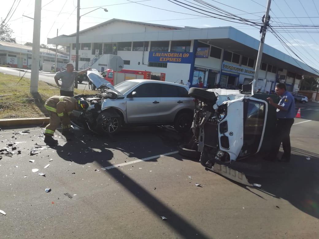 El hecho de tránsito tipo colisión y vuelco se produjo en el cruce frente a la entrada del Centro Femenino de Los Algarrobos, entre el vehículo, tipo camioneta, marca Susuki Vitara BP5741, y el vehículo, tipo pick up, con placa BC6384, el cual quedó volcado producto del impacto que recibió.