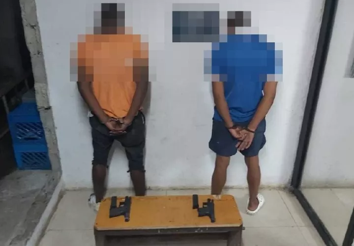 Waldemar Herrera, jefe de la Policía Nacional informó que una ronda policíal alertó a dos sujetos saliendo de un edificio, y fueron capturados, en la que se les encontró dos pistolas 9 milímetros.