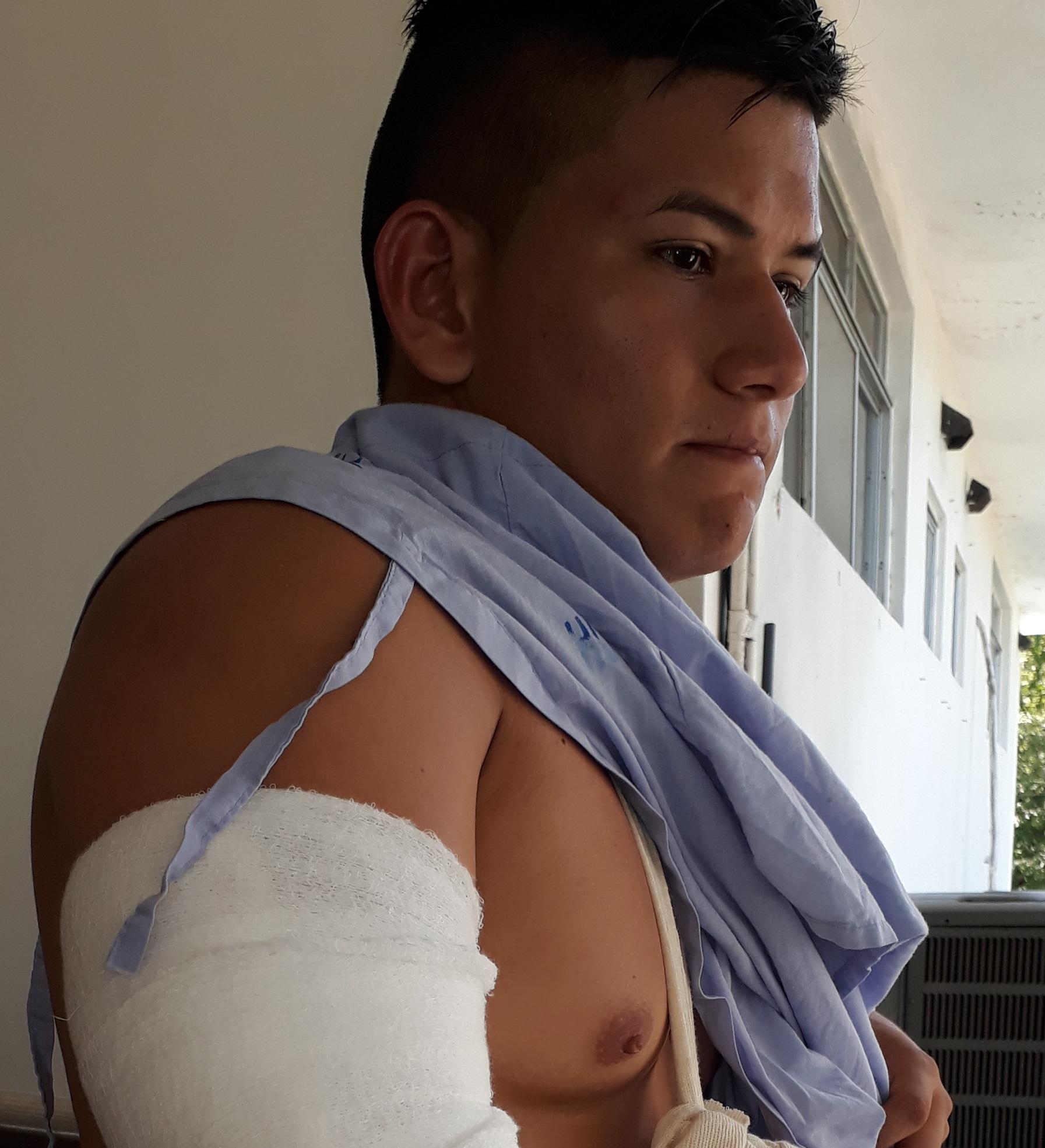 La víctima asegura que debido a la golpiza tomo un taxi que lo llevó hasta su casa en Los Algarrobos en Dolega, sin embargo, los fuertes dolores, lo hacen acudir el lunes a la policlínica Gustavo a Ross donde le confirman que mantiene el brazo fracturado y lo remiten al hospital Rafael Hernández, donde permanece en el cuarto de urgencias y donde es visibles los golpes en diferentes partes del cuerpo.
