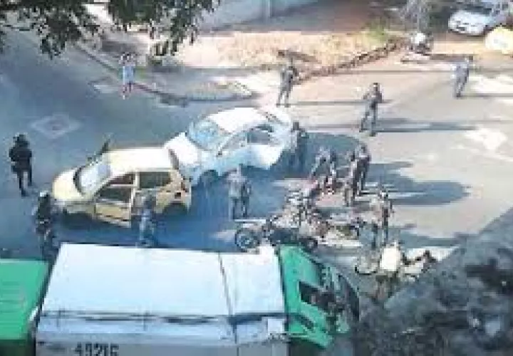 El vehículo donde viajaban los atacantes terminó estrellado en un muro que divide la avenida de Los Mártires.