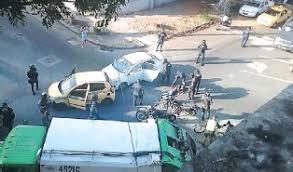 El vehículo donde viajaban los atacantes terminó estrellado en un muro que divide la avenida de Los Mártires.