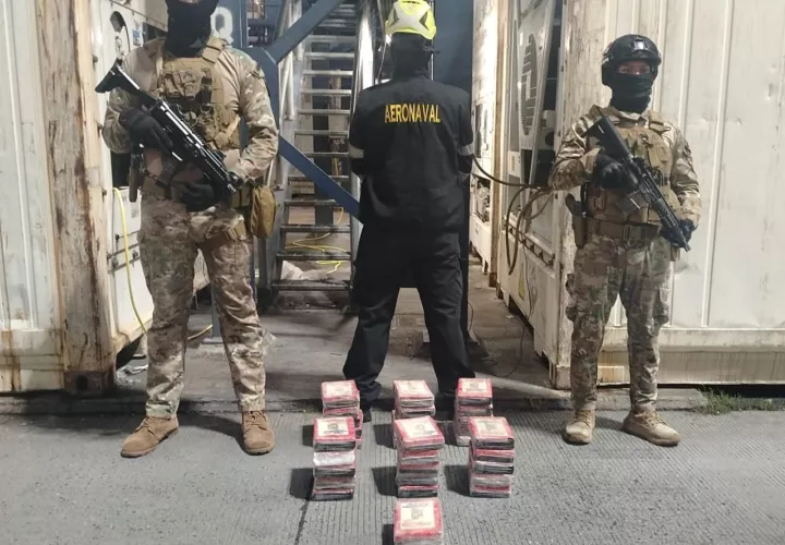 La Aeronaval incautó 32 paquetes de presunta droga ocultos en un panel de refrigeración de un contenedor en una terminal portuaria del Pacífico en la provincia de Panamá.
