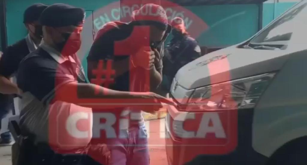 El sujeto que bajó de una patrulla policial con un suéter en la cara impidió que fuera indentificado por los medios de comunicación que cubren la audiencia de control de garantías en la sede del Sistema Penal Acusatorio (SPA), localizado en plaza Ágora.