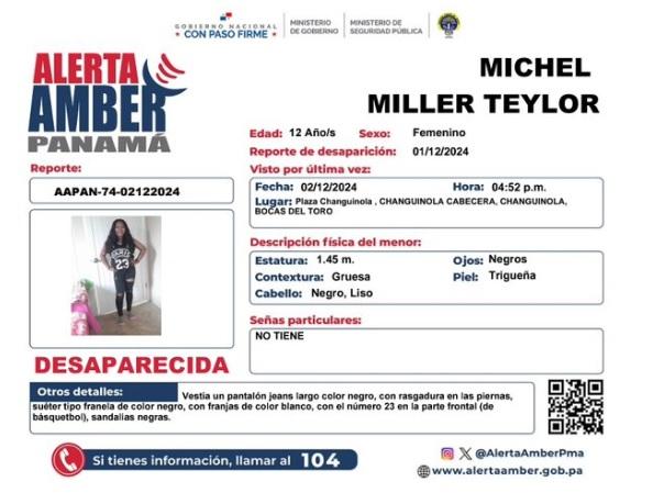 La Fiscalía de Panamá ha activado la Alerta Amber para localizar a Michel Miller Teylor, según lo establecido por la Ley 230 del 24 de junio de 2021. La solicitud de colaboración ciudadana es urgente, ya que se teme por su seguridad.