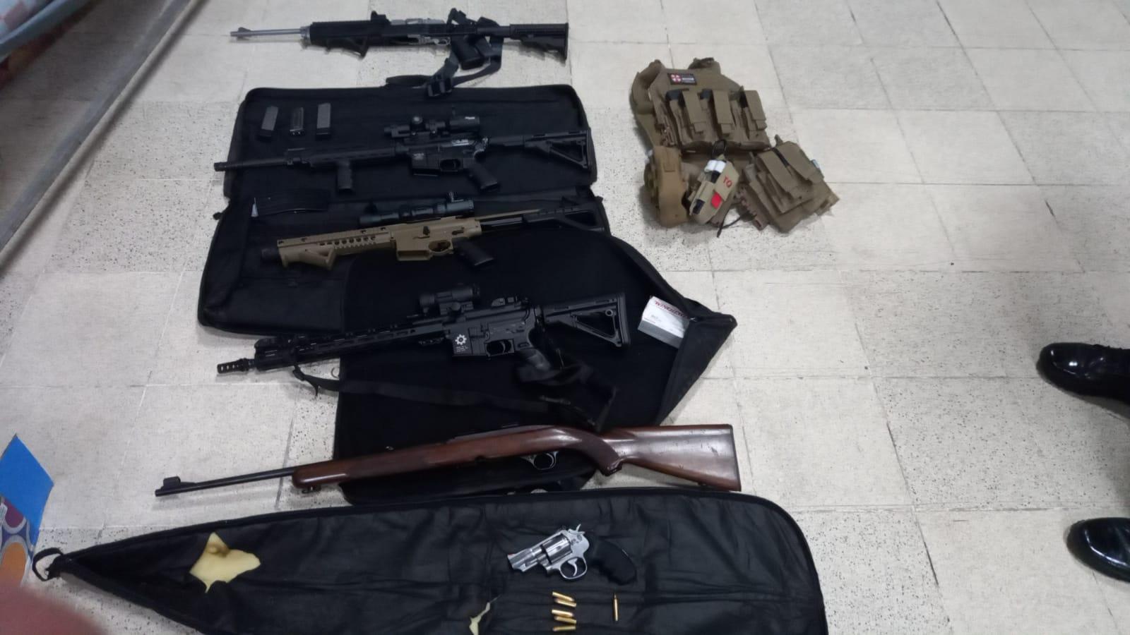 Entre ellas dos pistolas con su cargador, con 12 armas vivas, un chaleco antibala, tres cargadores, tres armas de guerra con mira telescópica, una escopeta, un revólver.
