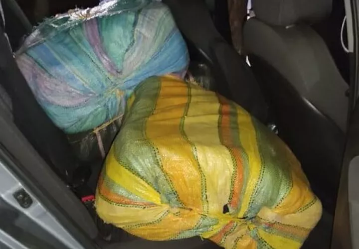En dos bultos dento del auto estaban distribuidos los paquetes de la droga.