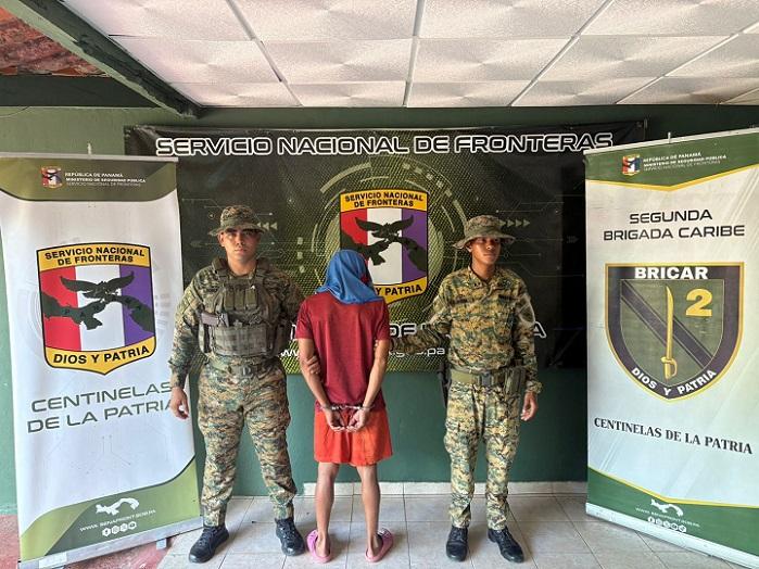 El sospechoso fue aprehendido por unidades de la Brigada Caribe del Servicio Nacional de Fronteras (Senafront) tras labores de patrullaje y seguimiento.