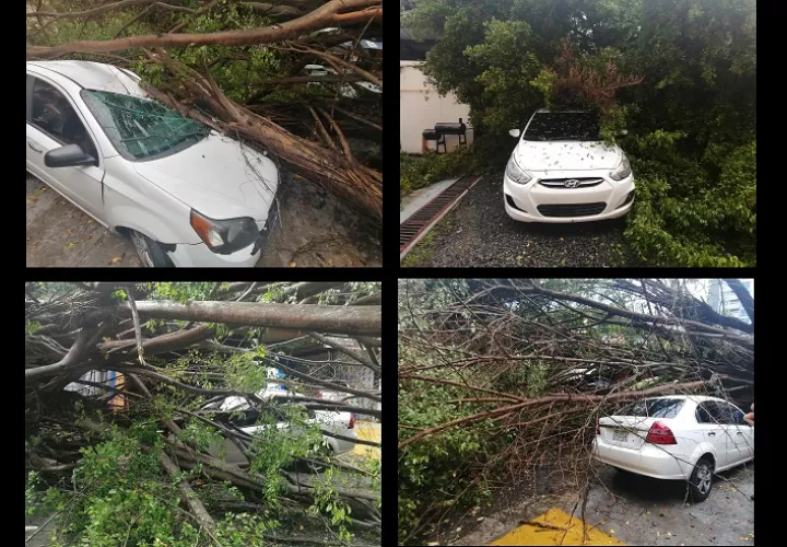 Un árbol de considerable tamaño se desplomó sobre dos vehículos, la tarde de este jueves, en Calle D, El Cangrejo, sin que se reportaran personas heridas o lesionadas a causa del suceso.