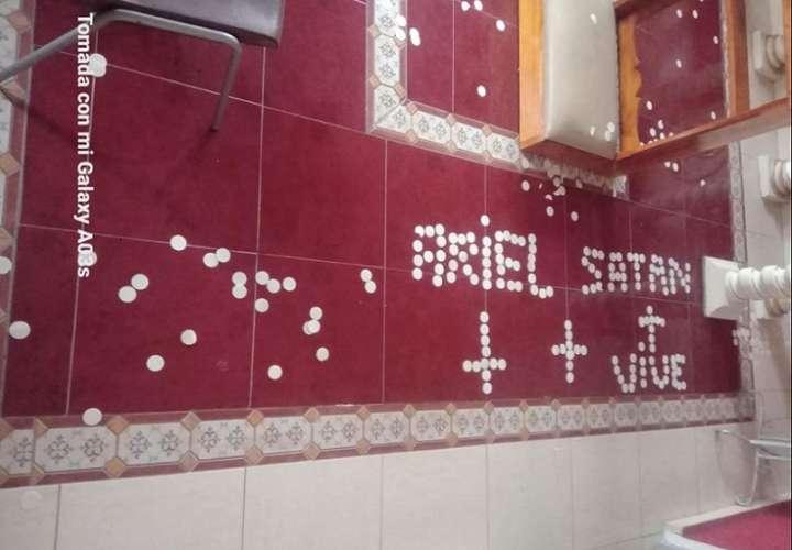 Parte de las hostias fueron utilizadas para escribir en el piso de la iglesia "Ariel Satán vive" además de colocar varias imágenes religiosas contra la pared.