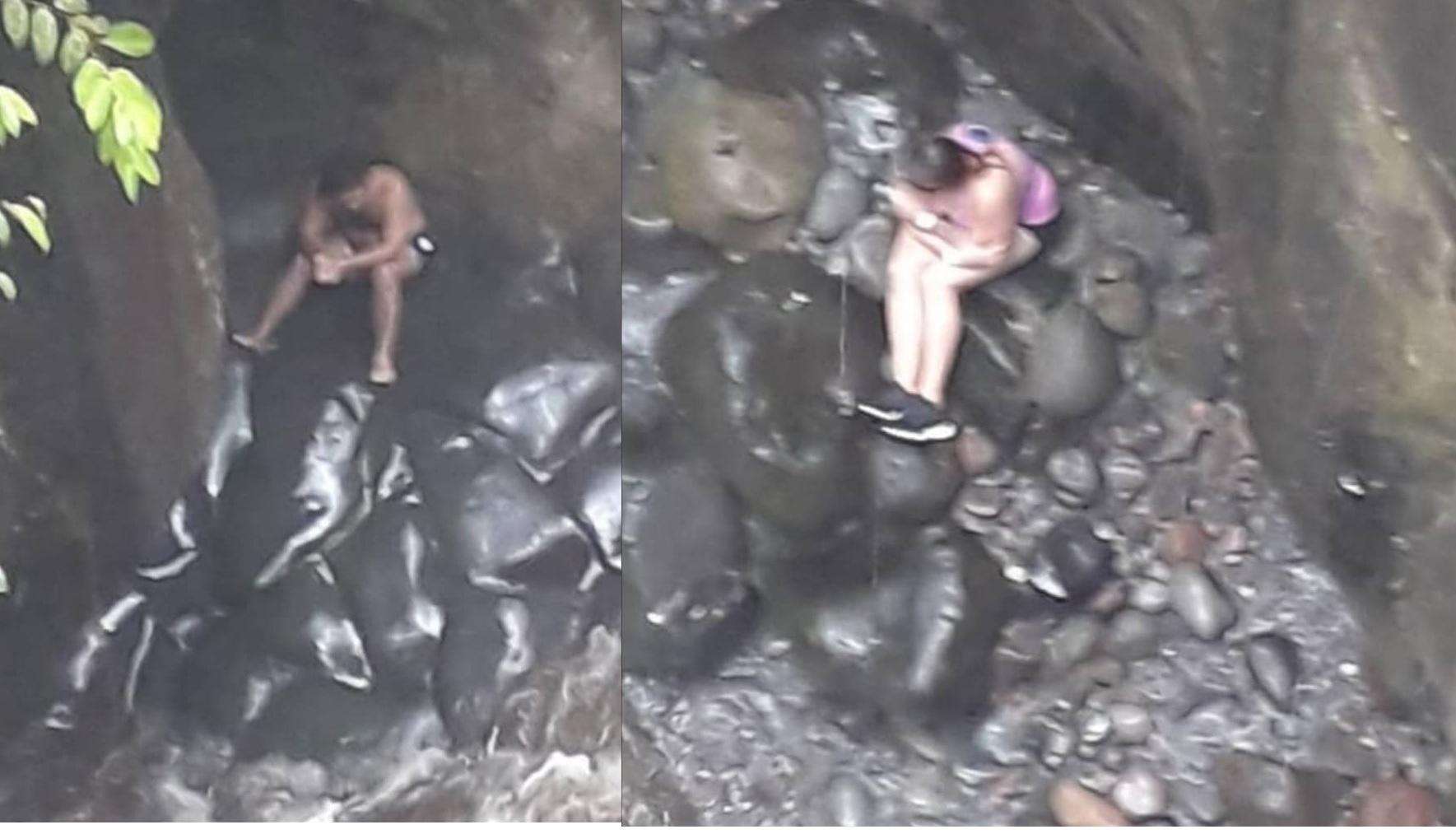En las fotografías que han circulado se logra observar a dos de las personas sentadas en las piedras y muy cerca de ellos el nivel del agua elevándose.