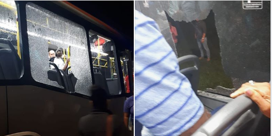 Mucho temor y desesperación causó entre usuarios y el conductor al ser objeto de este ataque se registró en medio del trayecto.