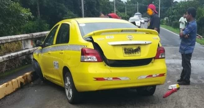 El accidente de tránsito se registró aproximadamente a las seis de la tarde, cuando el conductor del taxi perdió el control impactando al peatón que transitaba por el puente y luego choca con objeto fijo (barandal del puente).