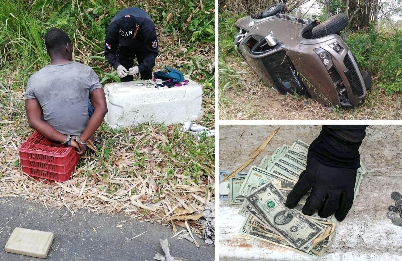 Aparentemente, en medio de la desesperación por escapar, el conductor de pick up perdió el control del vehículo y este terminó volcado a un costado de la vía, en Chepo, no muy lejos del puesto de control, lo que permitió que las unidades de la Fuerza Especial Antinarcóticos los aprehendieran.