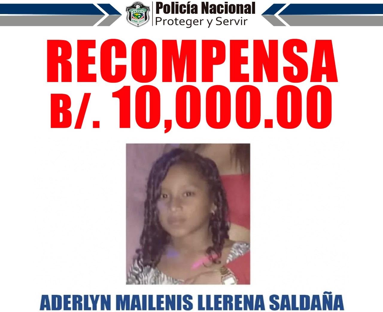 Aumentan a $10 mil la recompensa que ofrece la Policía Nacional, a quien brinde información sobre la ubicación de la niña Aderlyn Mailenis Llerena Saldaña, desaparecida en el distrito de San Miguelito.