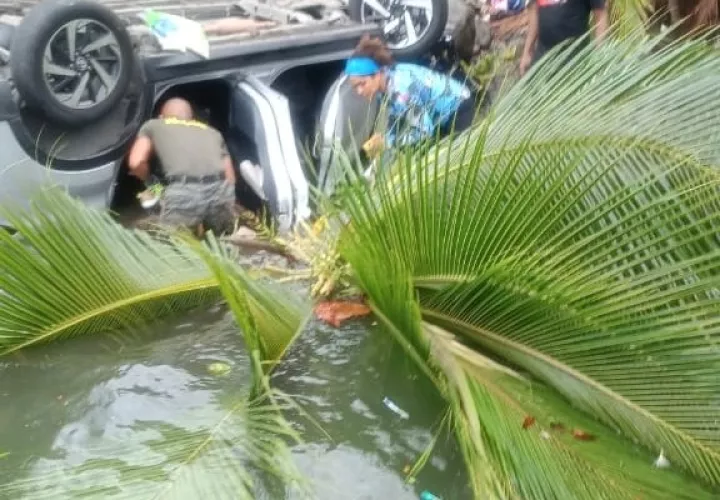 Del impacto el vehículo quedó volcado con las llantas hacia arriba. De inmediato agentes de la Policía Nacional de Portobelo, acudieron al auxilio de estas personas, debido a que el accidente ocurrió a pocos metros de esta estación policial.