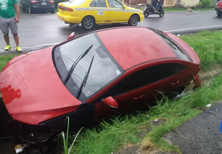Panamá- En medio de un fuerte aguacero que se registraba en Colón, un vehículo tipo sedán, color rojo, cayó en un desagüe en el corregimiento de Cristóbal.
