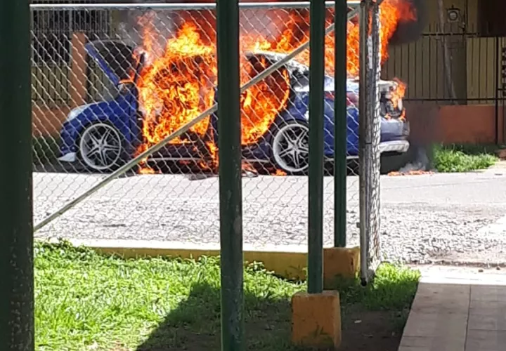 Un auto modificado fue consumido por las llamas hoy frente al centro de salud de la barriada de San José en David, provincia Chiriquí, sin dejar personas heridas.