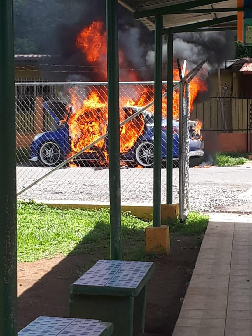 Un auto modificado fue consumido por las llamas hoy frente al centro de salud de la barriada de San José en David, provincia Chiriquí, sin dejar personas heridas.
