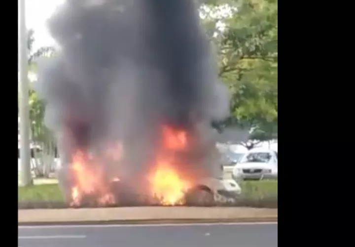 Un auto quedó envuelto en llamas en la avenida Balboa, a la altura de Marbella, en horas de la mañana de hoy, sábado.