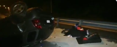 El auto quedó con las "llantas arribas" , con la carrocería destruida y con parte de las pertenencias regadas en la carretera.