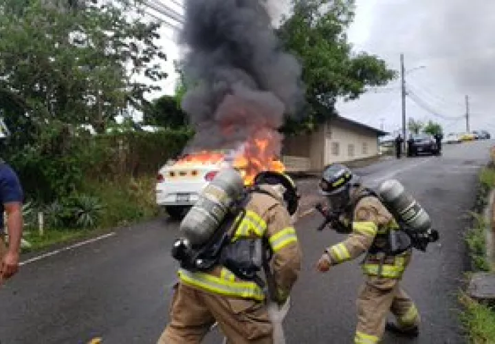Unidades de los "camisas rojas" del cuartel de San Miguelito de inmediato procedieron con espuma a sofocar el siniestro que,aparentemente, se originó en el motor. El fuego alcanzó la mitad de auto.