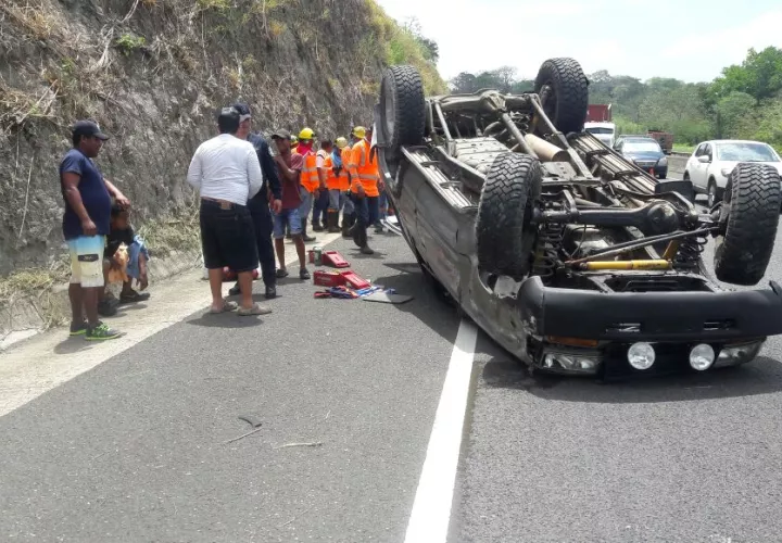 Panamá- Un auto se volcó a la altura del kilómetro 57 de la autopista Panamá-Colón.