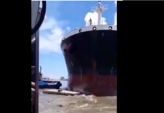 Barco de bandera panameña choca en Barranquilla (Video)