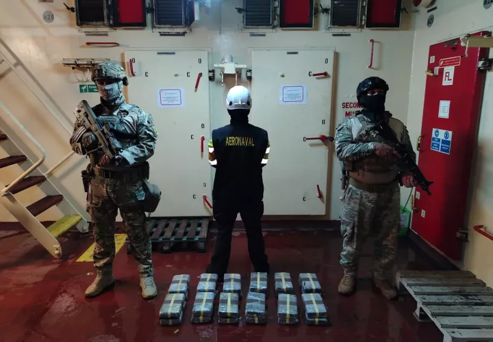 La Aeronaval de Panamá aseguró 24 paquetes de presunta sustancia ilícita ocultos dentro de los paneles de refrigeración de un contenedor en una terminal portuaria de la provincia de Colón.