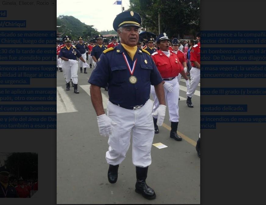 En estado delicado se mantiene el teniente del cuerpo de bomberos Asunción Rodríguez, quien pertenece a la compañía N°6 del cuerpo de bomberos de la provincia de Chiriquí, luego de participar de la extinción de un incendio de masa vegetal en el sector del Francés en el distrito de Boquete.
