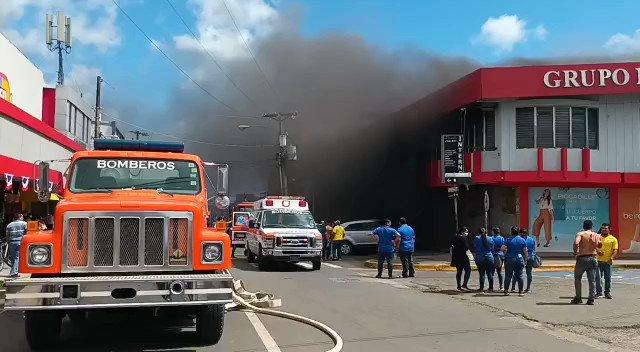 Unidades de los bomberos desarrollan en este momento labores de extinción por un incendio que se registra en unos de los almacenes, ubicado en la avenida Central de Santiago, provincia de Veraguas.