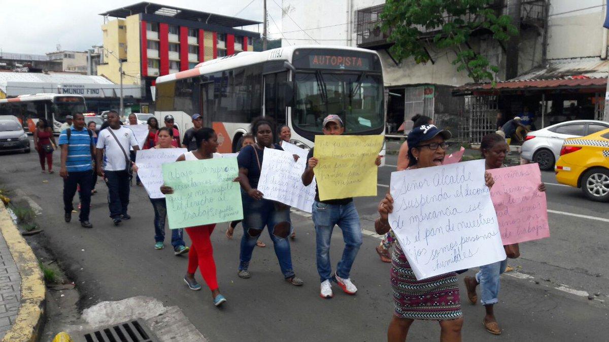 Un grupo de buhoneros del área de El Marañon marcharon hoy hacia la sede de la Alcaldía de Panamá por el derecho al trabajo.