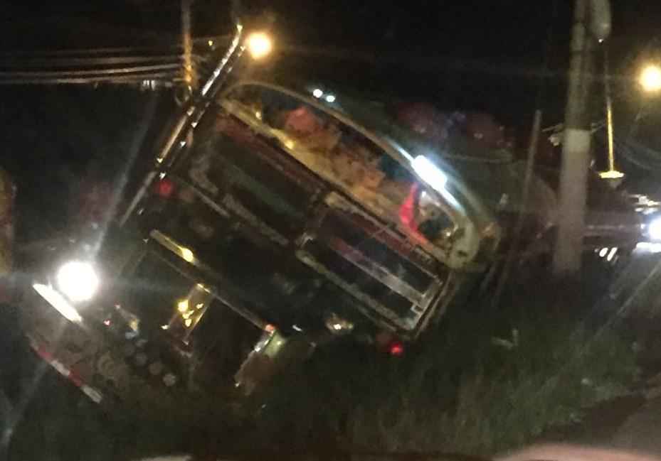 Bus cae en cuneta y deja cinco heridos