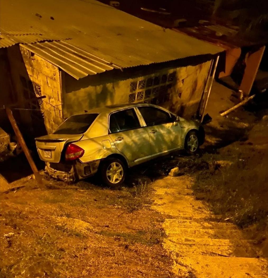 Pero la noche no terminó allí: en las horas de la madrugada del domingo, un vehículo tipo sedan se estrelló contra una vivienda en la comunidad de Santa Rita Arriba.