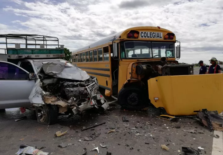 Panamá- Un autobús de transporte colegial y un vehículo, tipo pick up, colisionaron frontalmente la mañana de este jueves en la vía Interamericana, a la altura de la comunidad de La Fragua, en Santiago de Veraguas.