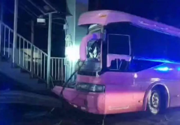 El bus chocó al parecer contra la base de un puente peatonal en horas de la mañana en la carretera Interamericana, en el sector de Los Ruices, distrito de Las Palmas, provincia de Veraguas.