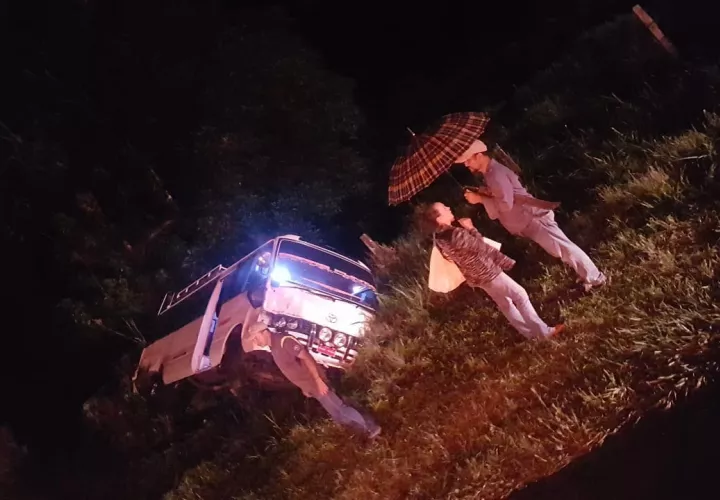 Un herido leve dejó esta noche un accidente de tránsito cuando un bus de la ruta David - Volcán colisiona con una vaca y luego es impactado con un vehículo pick up que lo saca de la carretera a la altura de la comunidad de San Miguel del Yuco en el distrito de Nugaba en la provincia de Chiriqui.