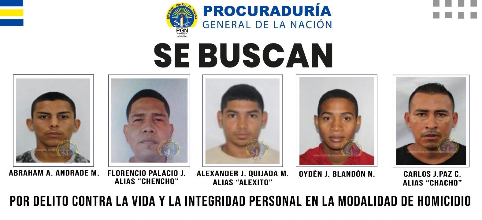 La Fiscalía Regional de San Miguelito, a través de la Sección de Homicidio y Femicidio, solicita la colaboración de la ciudadanía para dar con el paradero de cinco hombres indicados por delitos contra la vida y la integridad personal en la modalidad de homicidio doloso en hechos diferentes.