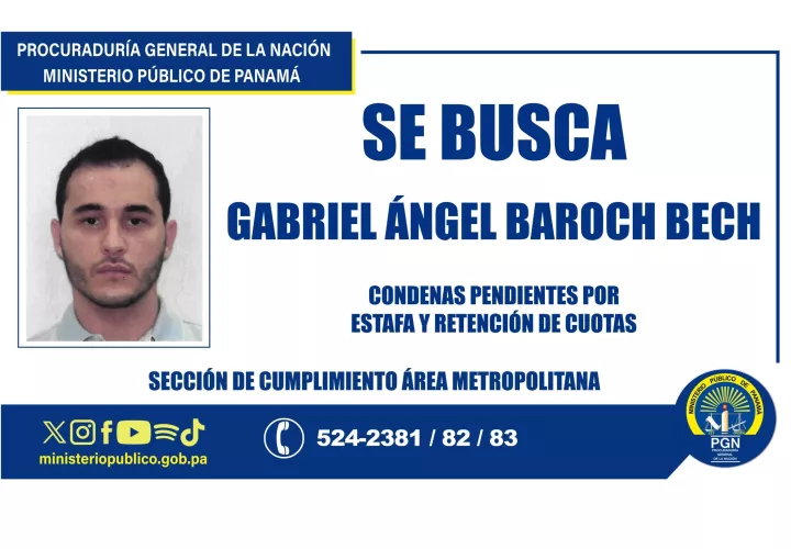La Sección de Cumplimiento del Área Metropolitana solicita la colaboración de la ciudadanía para localizar a Gabriel Ángel Baroch Bech, quien mantiene condenas pendientes por los delitos de estafa y retención de cuotas en perjuicio de la Caja de Seguro Social