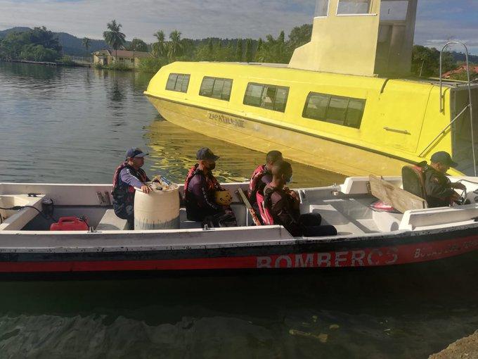 Rescatistas del Sistema Nacional de Protección Civil y de los bomberos realizan un recorrido marítimo por la zona.